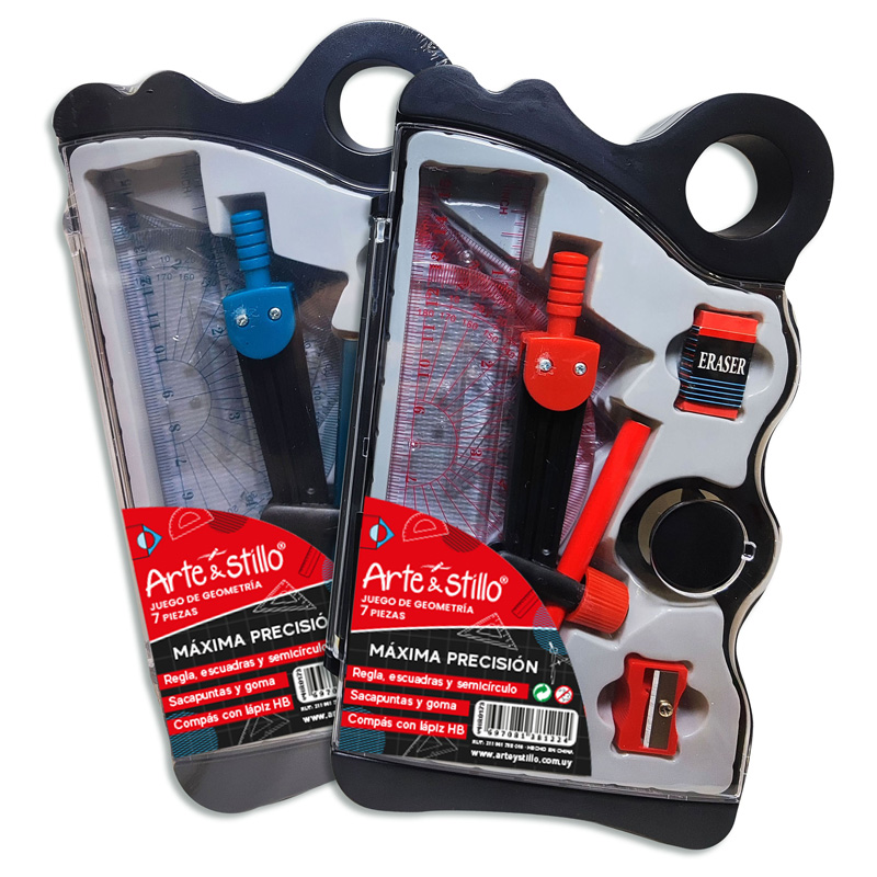 Juego de geometría Arte & Stillo® 7pzas. – rojo, azul – 11.5x21cm